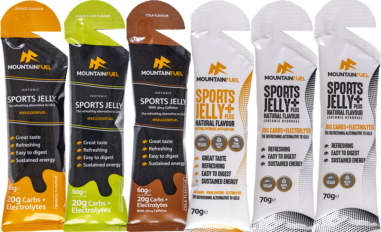 The Sports Jelly is fundamentally different to a traditional sports gel. We selected a specific pectin which enables us to encapsulate the multi source carbohydrate in a natural hydrogel, melting in your mouth and passing through your system without any worries of GI (stomach issues), while providing a sustained energy release. The process we follow enables us to hydrate the jelly while encapsulating the carbohydrate and minerals to ensure you do not require additional fluid and the Jelly passes through your system efficiently making it very easy on the stomach – No gut bombs and perfect for sporty kids through to adults. By utilising a hydrogel in a sports gel we have helped athletes of all abilities who previously struggled or simply could not use traditional energy gels due to the impact on their digestive systems. Having successfully helped IBD & IBS customers to enjoy their racing again the Mountain Fuel Sports Jellies have been described by many as ‘game changers’.